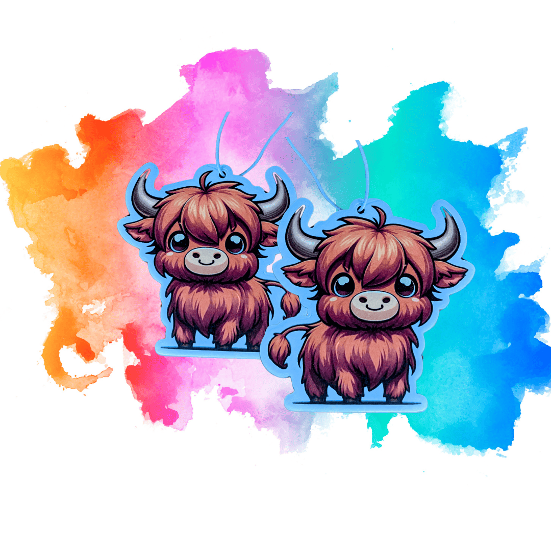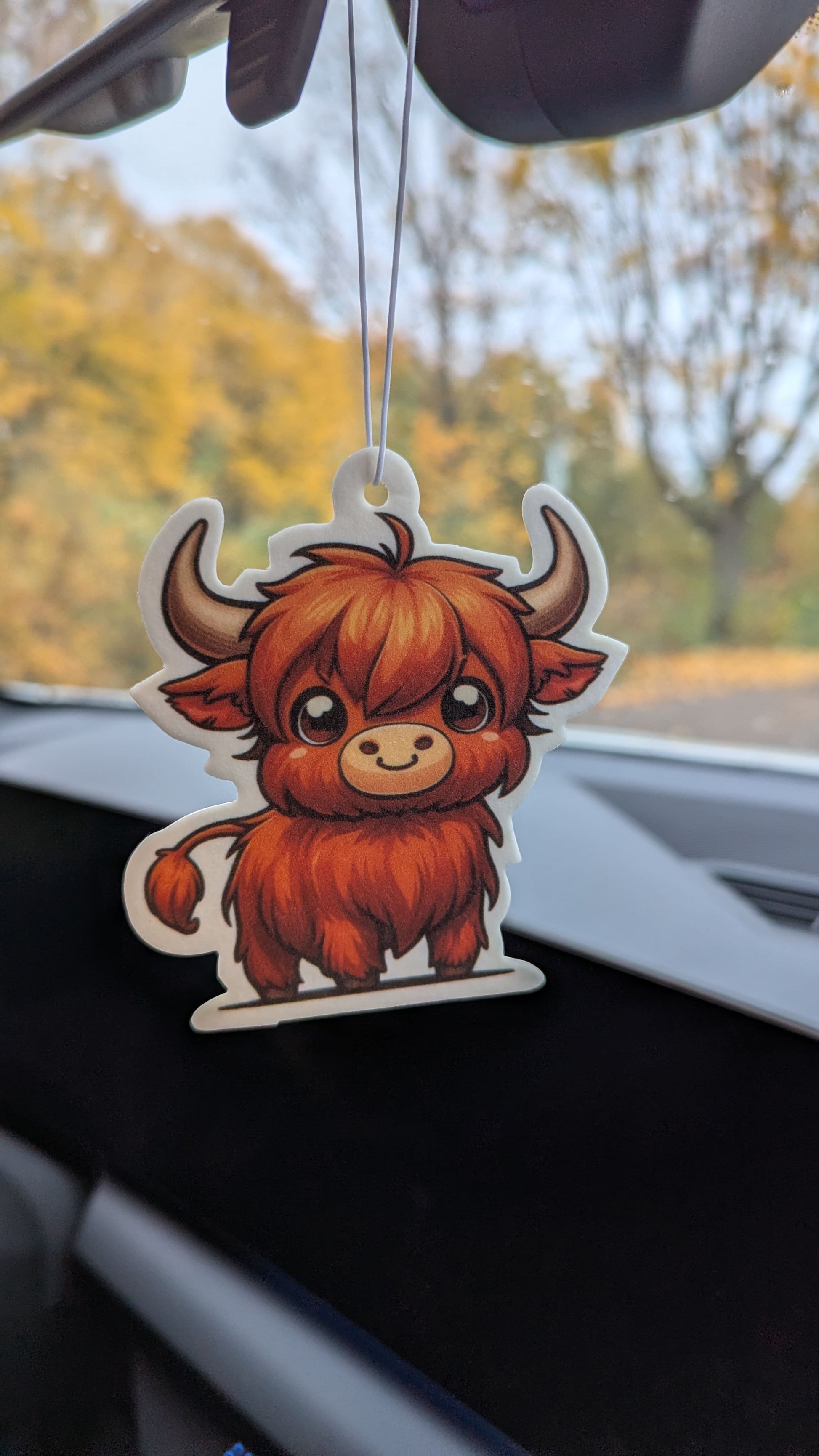 ✅ Einzigartiges Duftbaum-Design: Niedliche Hochlandkuh – farbenfroh, süß und sofort auffällig.